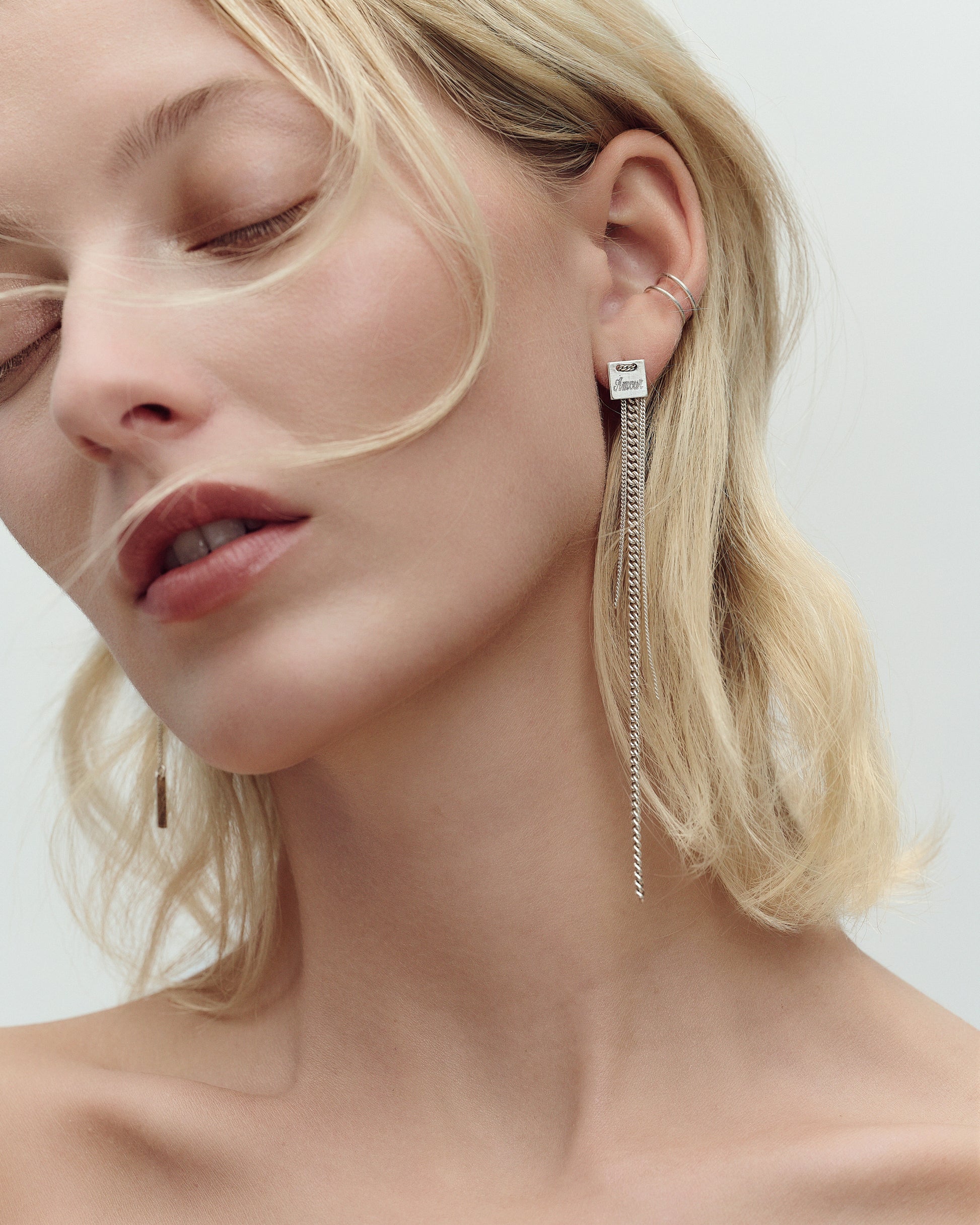 Justify My Love carries your mood in movement. A subtle engraved charm sits close to your ear, while layered chains swing and dance with every step – like your wild spirit.
