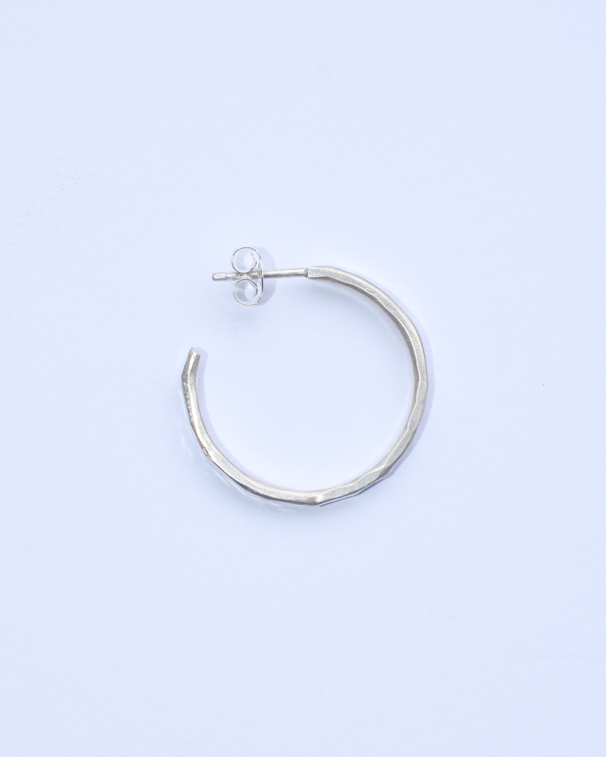 Nightcall is proof that some pieces never fade. Hammered silver hoops with a subtle edge – always effortless, always a hit.