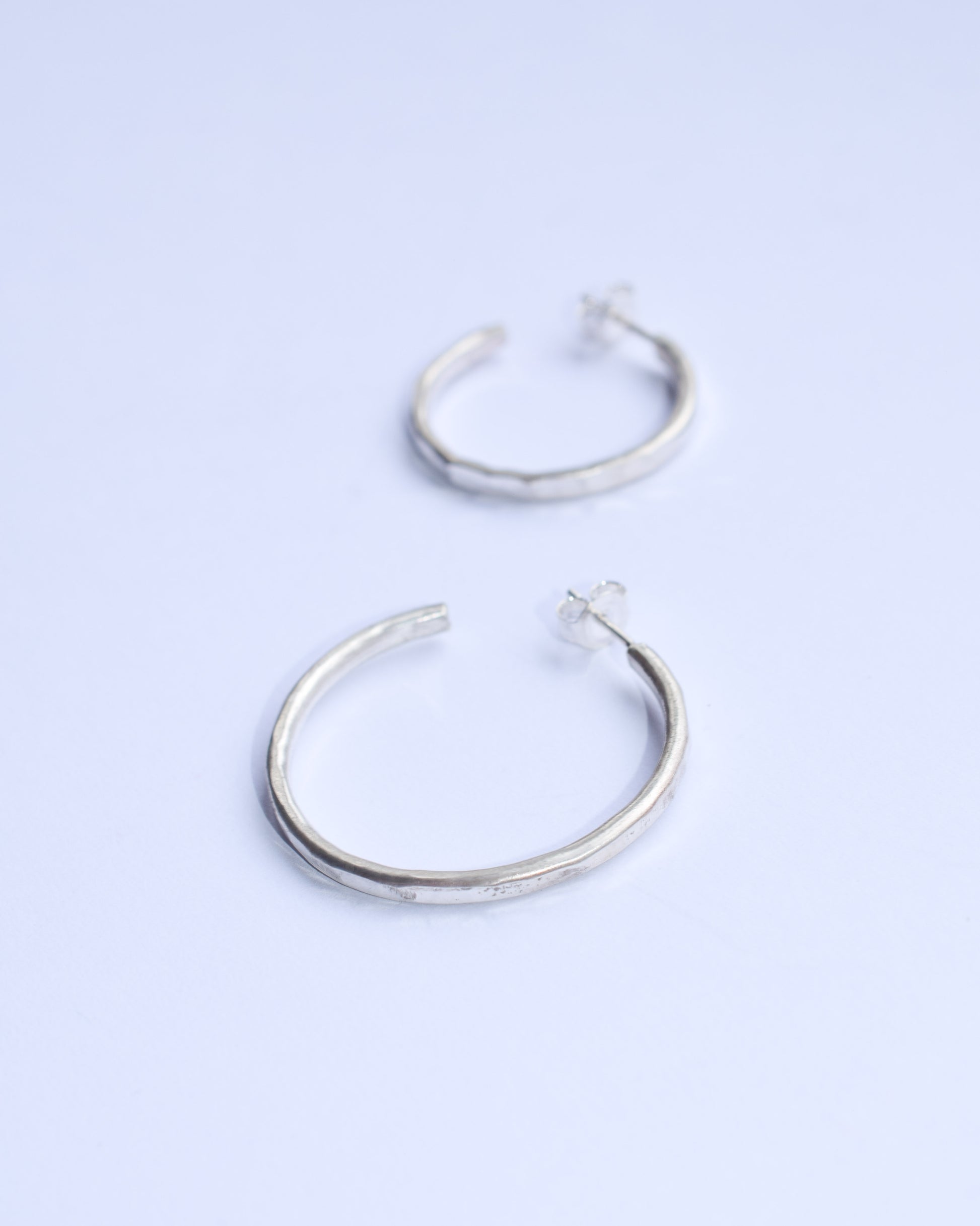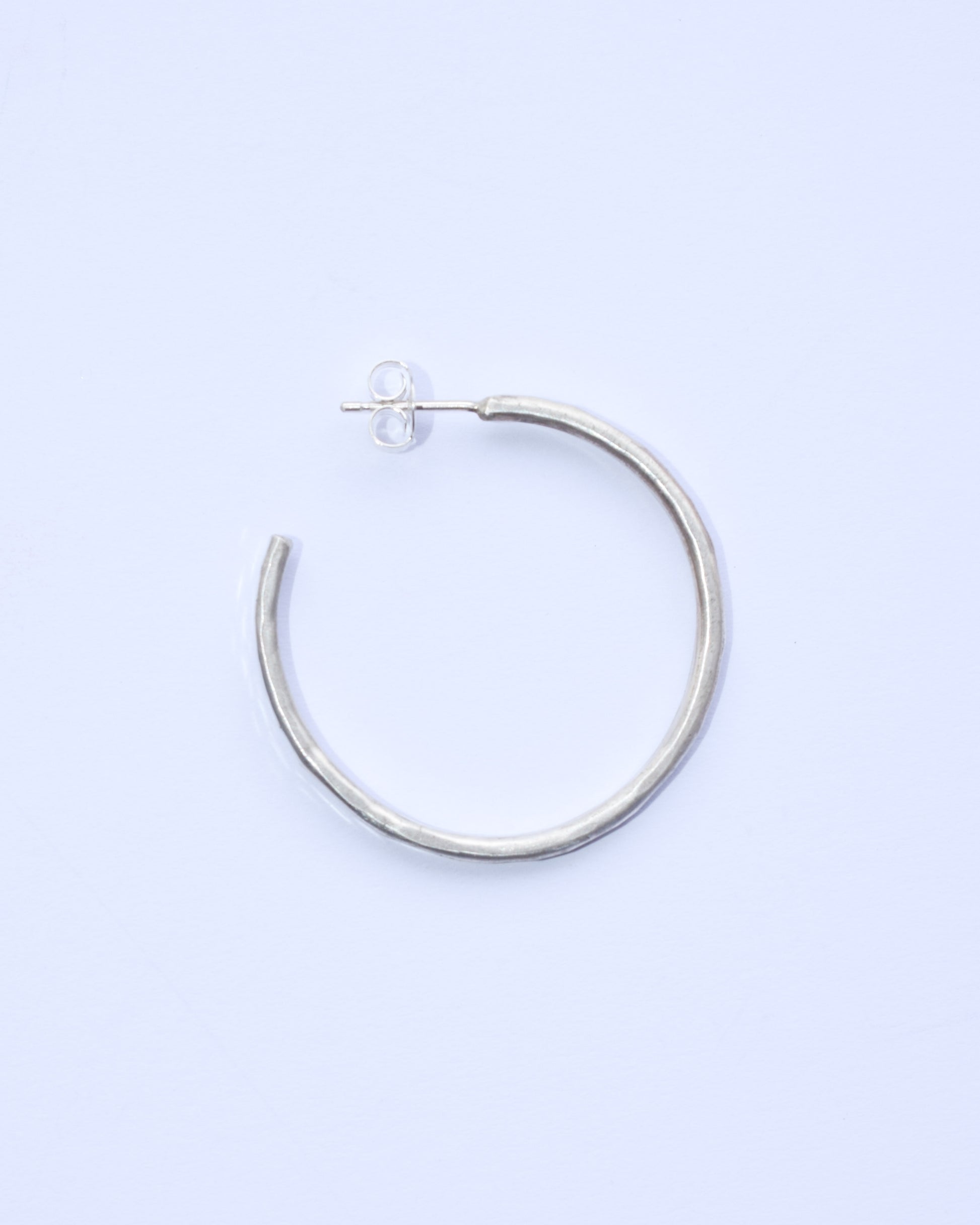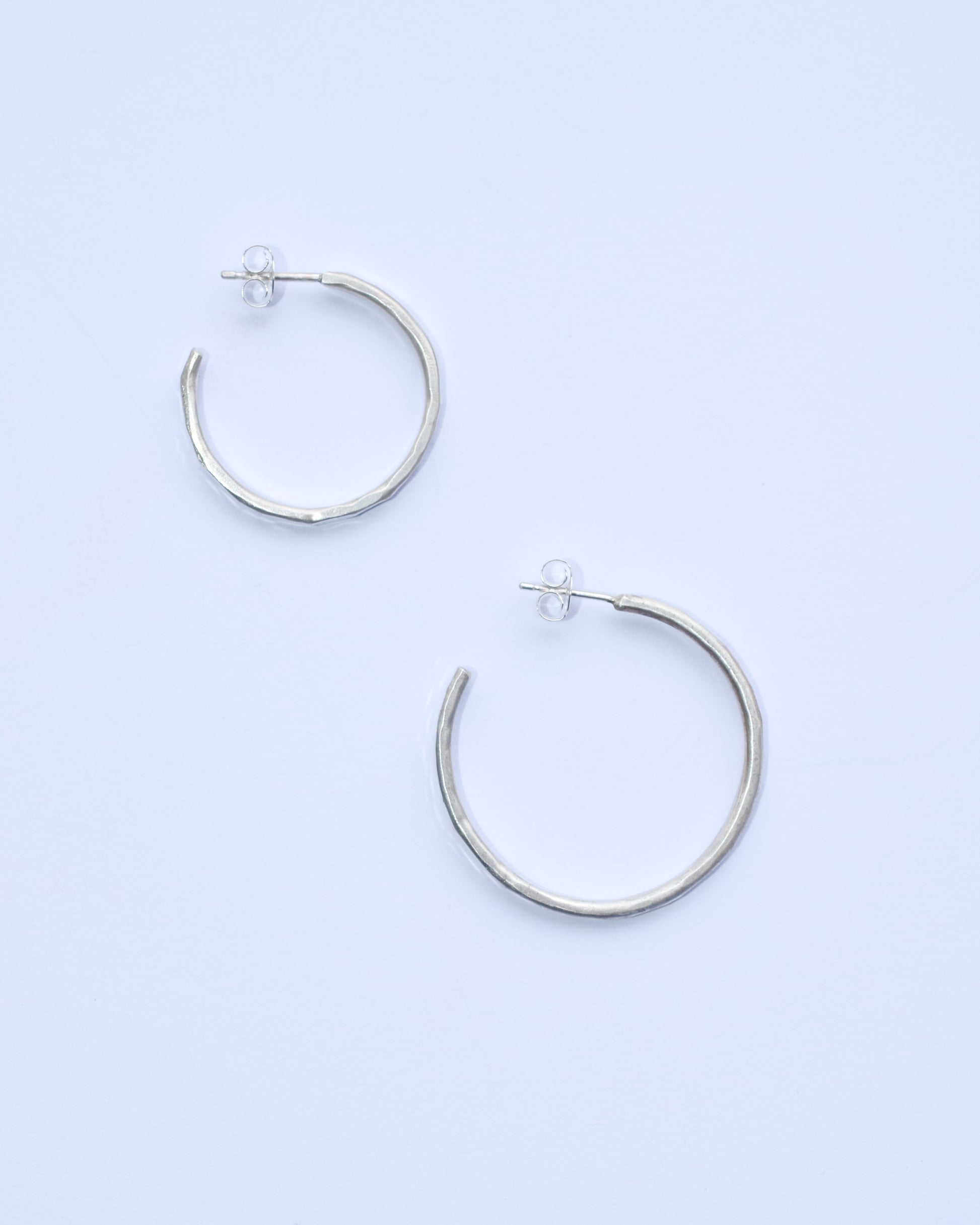 Nightcall is proof that some pieces never fade. Hammered silver hoops with a subtle edge – always effortless, always a hit.