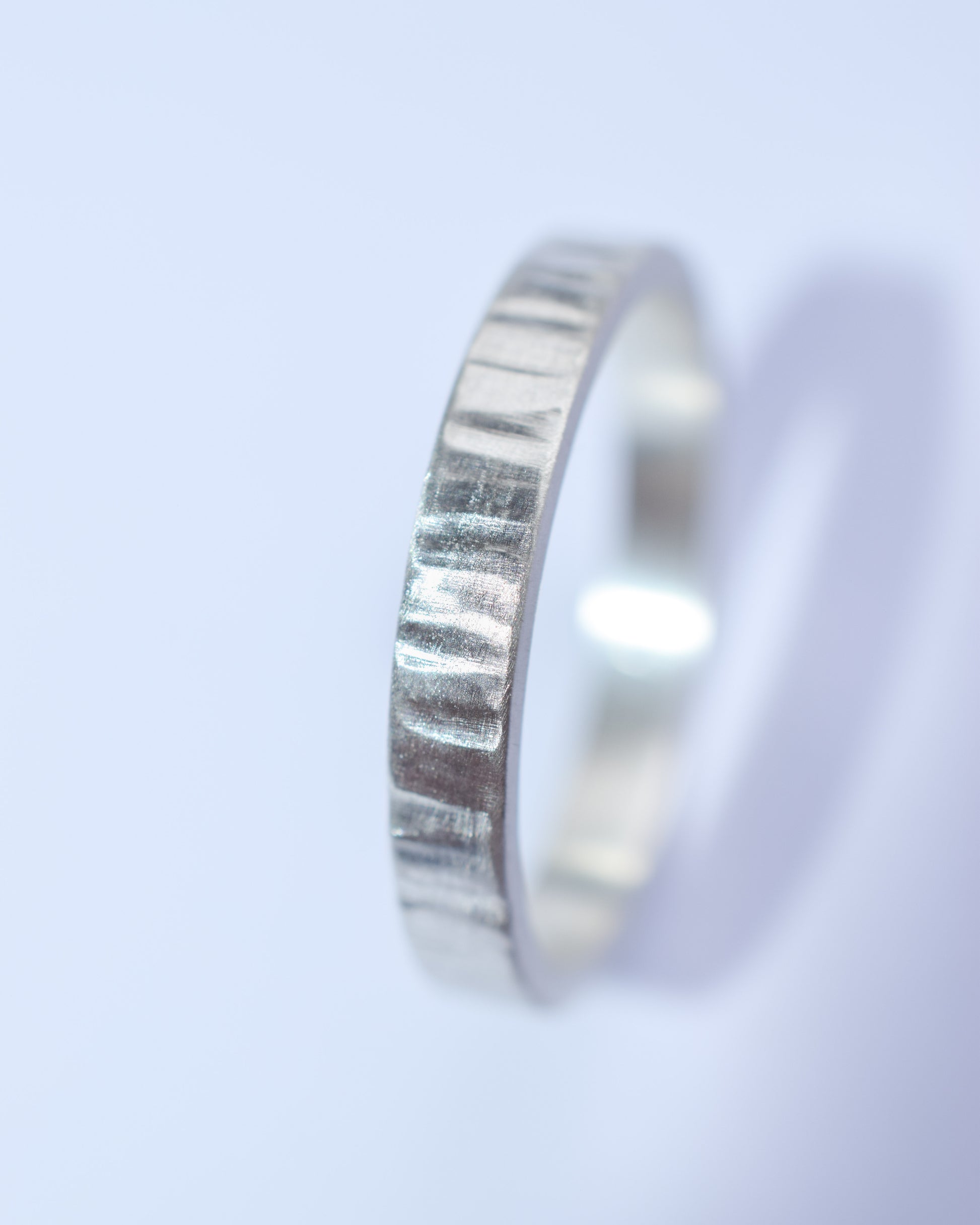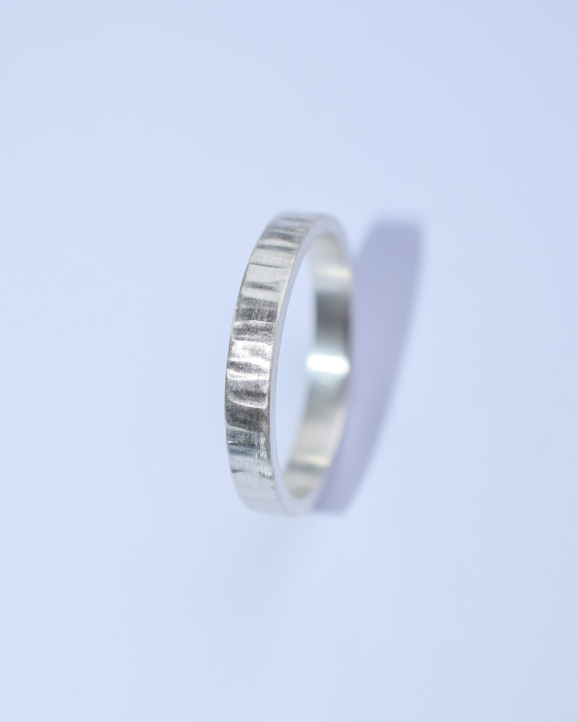 Delicate silver lines wrap around this ring like quiet whispers of light.